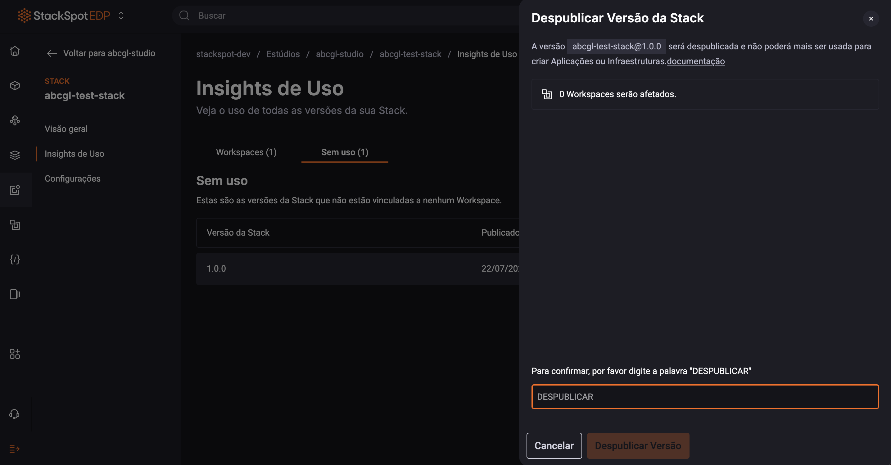 Além disso, você pode depreciar ou despublicar a versão de uma Stack que não está sendo utilizada.
