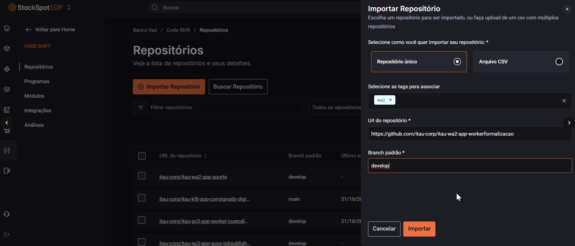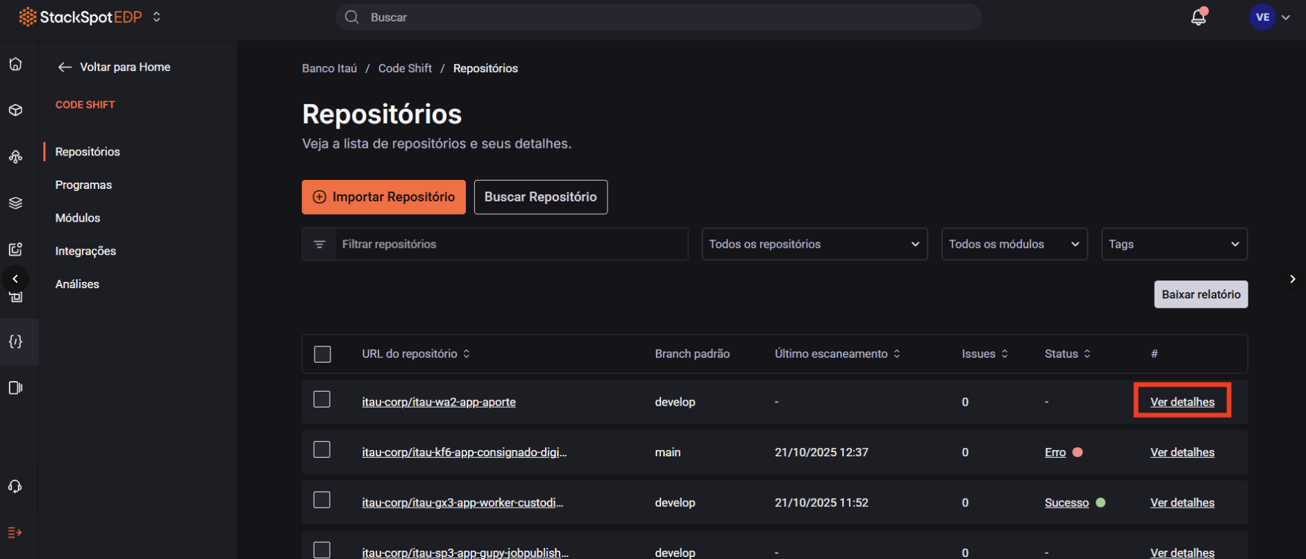Passo 1. No Portal da StackSpot EDP, acesse a página do Code Shift;