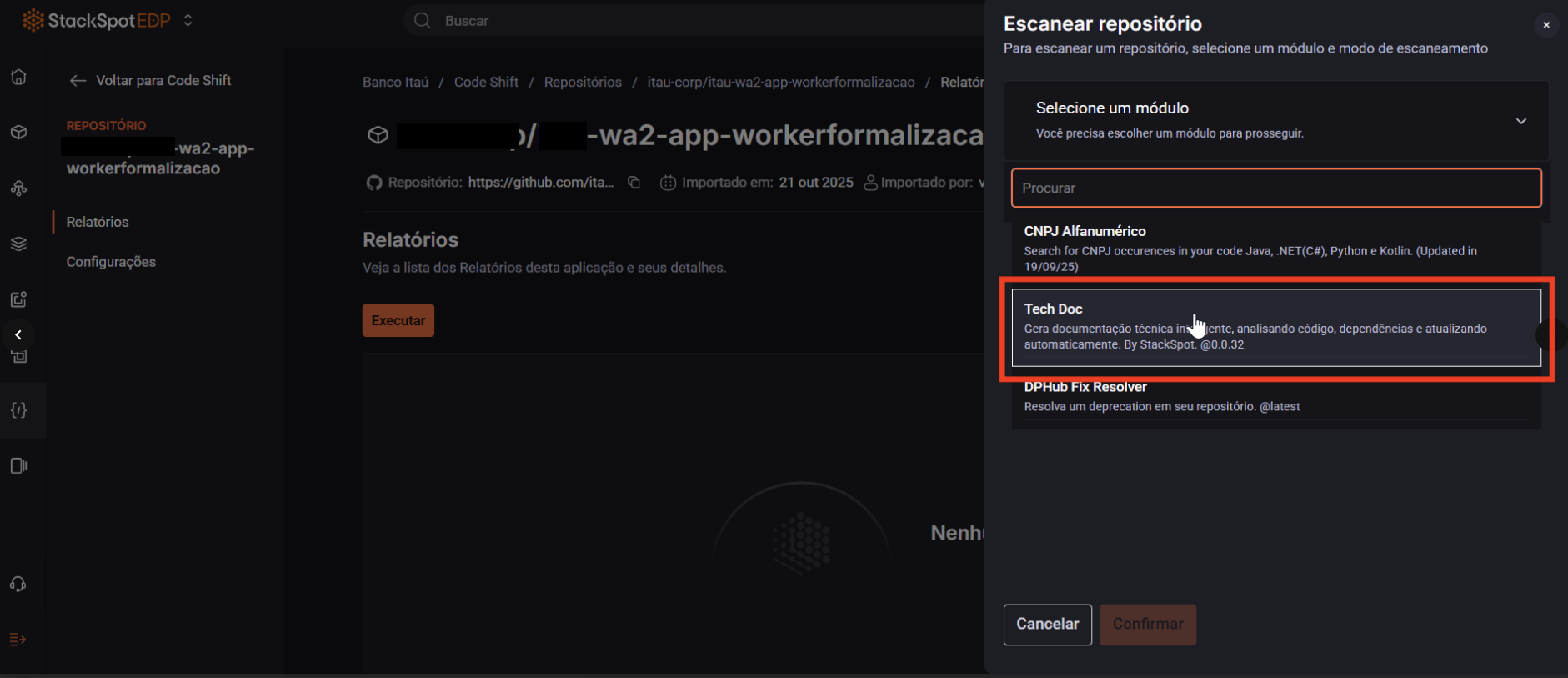 Passo 2. Clique em Executar e, na janela Escanear aplicação, escolha o módulo Tech Doc;