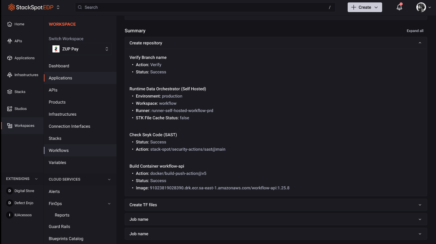 See an example of a Workflow summary in the StackSpot EDP Portal.