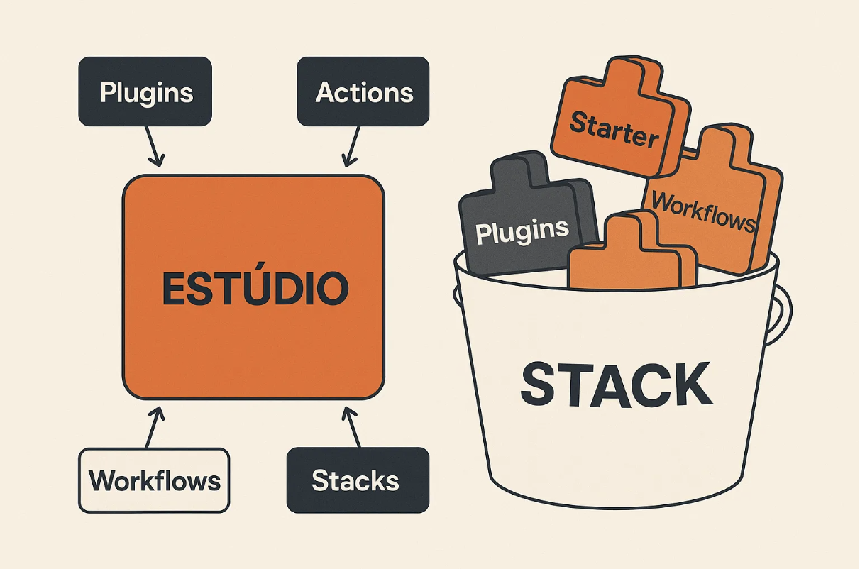 Se você utiliza a StackSpot para desenvolver Aplicações ou Infraestruturas, está usando conteúdos como Plugins e Actions agrupados em Stacks, todos padronizados publicados em Estúdios.